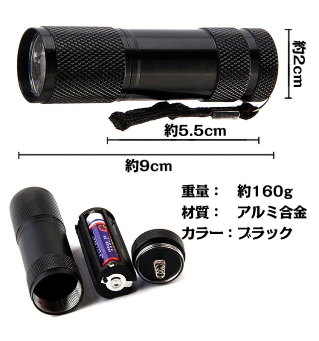 懐中電灯型 ブラックライト led ハンディライト 掃除 トイレ ペット 宝石鑑定 ジェルネイル硬化 汚れ確認 紫外線 zk173