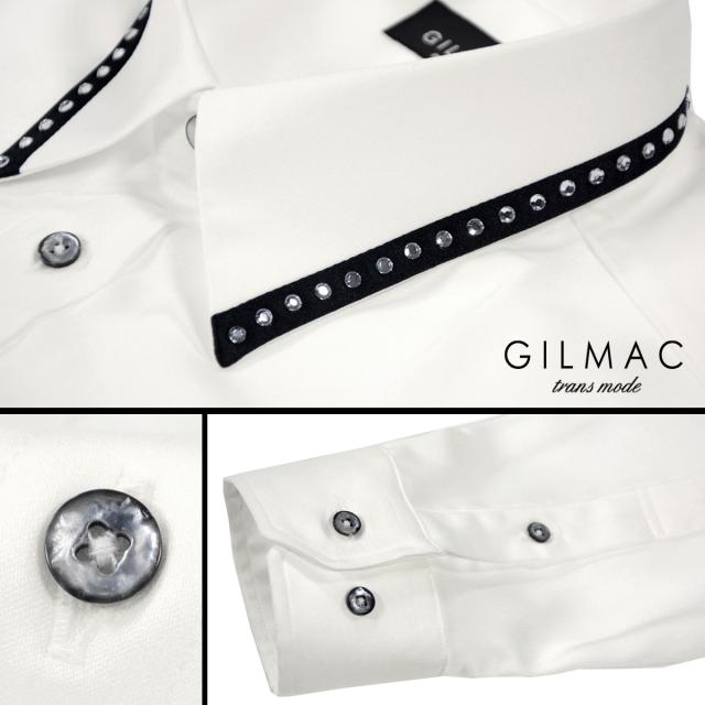 サテンシャツ ドレスシャツ 長袖 無地 レギュラーカラー メンズ 襟 切り替え ラインストーン 結婚式(ホワイト白) 37120