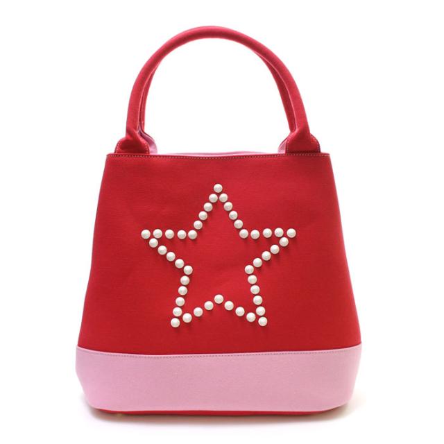 【スターリアン】StarLean★ スタースタッズキャンパストートバッグ(RED)ピンク レッド 星 大容量 男性 女性
