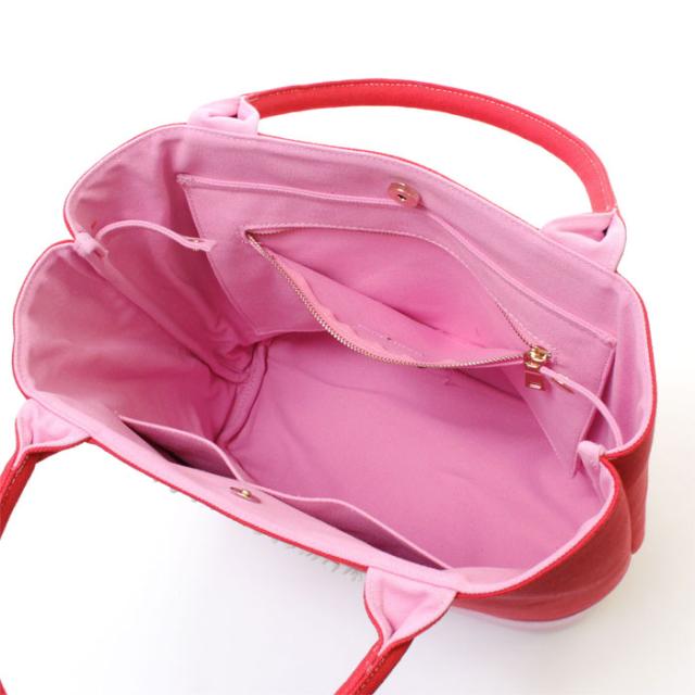 キャンパス地を使ったスターリアンオリジナルのトートバッグ。携帯、財布はもちろん、タブレットや化粧ポーチ、500mlペットボトルなどが楽々入る大容量に加え、内ポケットを3つ備えているので使い勝手もバッチリ。生地も厚手で丈夫なので長く使っていただける商品です。カラーリングはレッドとピンク、ホワイトでポップで可愛らしい雰囲気のアイテムになっています。