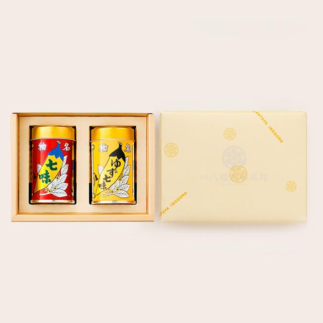 八幡屋礒五郎七味唐からし・七味唐からしゆず入りのケース入で八幡屋礒五郎専用の包装紙で包装されているので贈答用にも最適です。