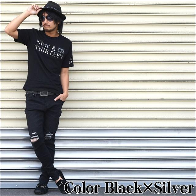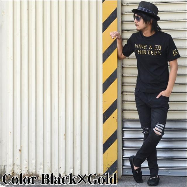 【閉店セール】半袖Tシャツ バック唐草柄ロゴデザインプリント半袖Tシャツ 70725 メンズファッション キレイメ シンプル メンズカジュアル Vネック メンズ ストレッチ アメカジ クールカジュアル メール便300円対応商品 G.H.R NINE&THIRTEEN