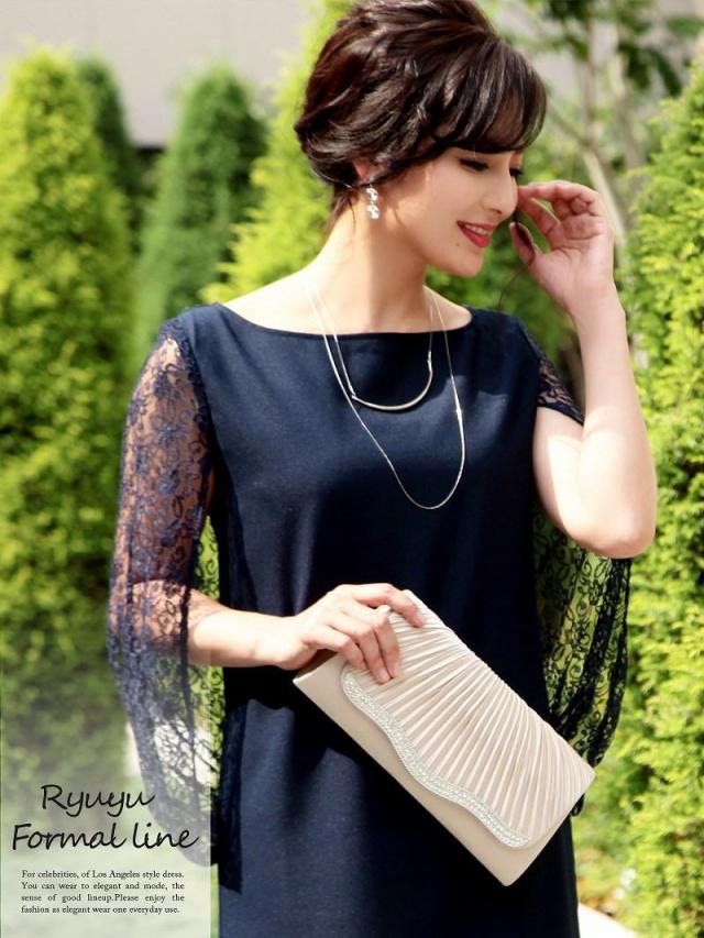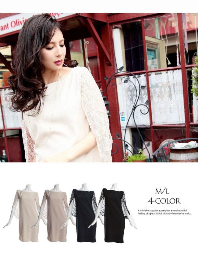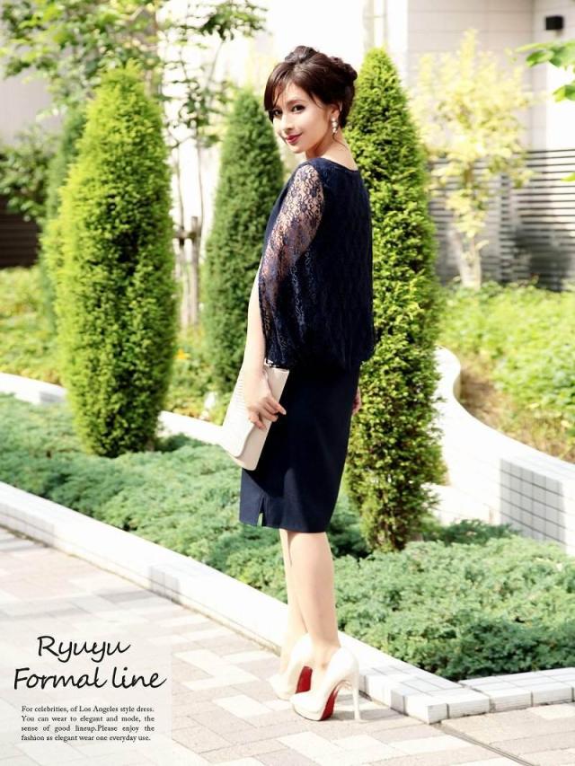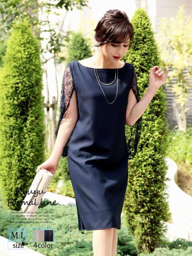 キャバドレス キャバ ドレス キャバクラ ミニドレス パーティードレス Ryuyu レースケープスリーブミニドレス 袖付き膝丈ドレス