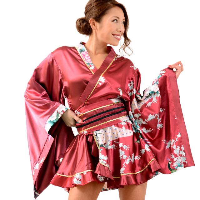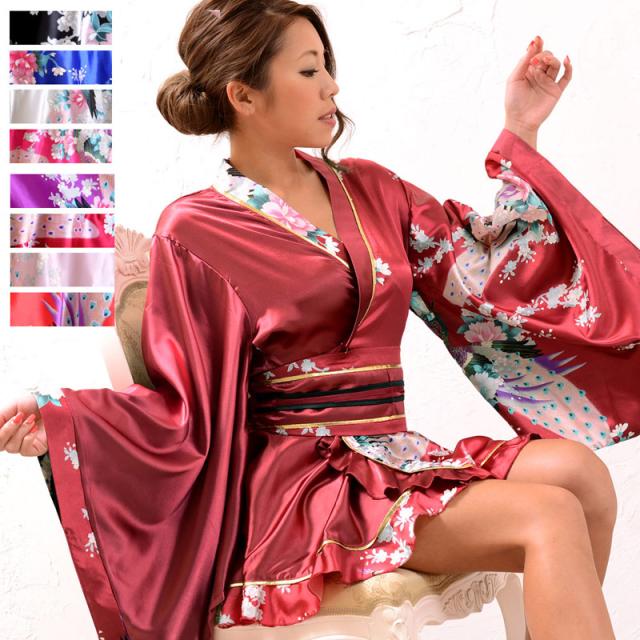着物ドレス 花魁 コスプレ衣装 浴衣 祭り 結婚式 ダンス衣装 和服 ミニドレス キャバドレス 和風孔雀柄花魁着物ミニドレス