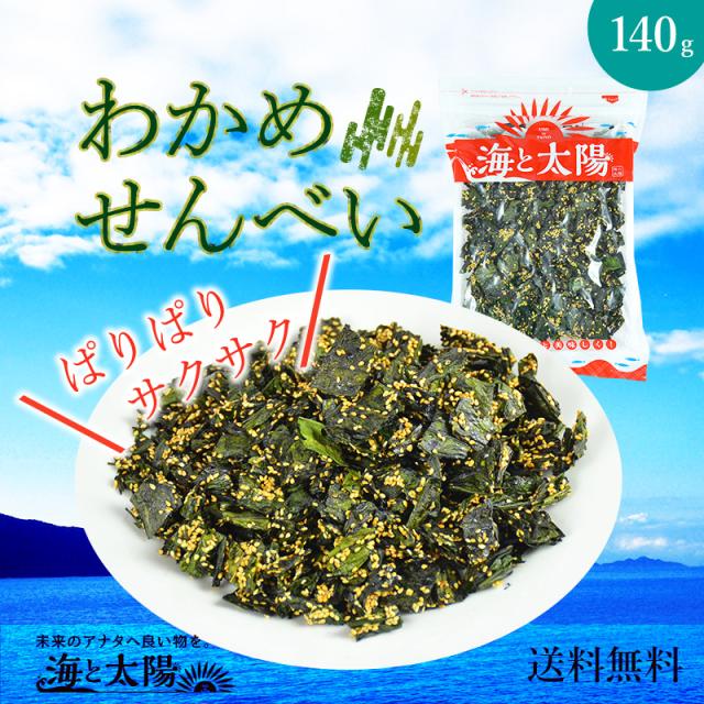 <わかめせんべい140g>甘めの味付けと、ごまの香ばしさが合う! ヘルシー ワカメ ごま 胡麻 おやつ おつまみ 海藻 送料無料 海と太陽 珍味 ポイント消化 クーポン消化 煎餅 クリスマス 年末年始