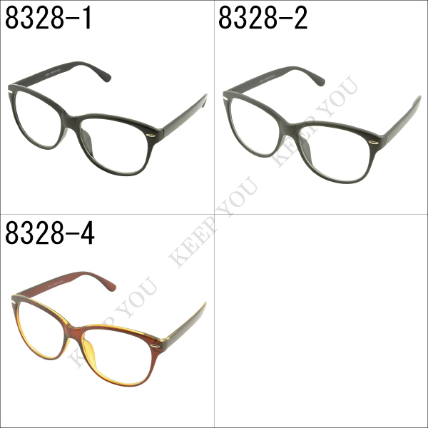 【定形外280円発送】伊達メガネ ブラックフレーム ブラウン フレーム 3カラー 8328-1 8328-2 8328-4 黒縁メガネ ウエリントン 形状タイプ sun-046 【伊達メガネ サングラス サングラス 眼鏡 】『T』 046┃