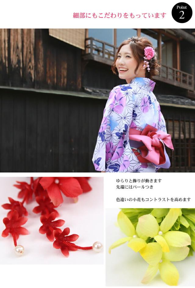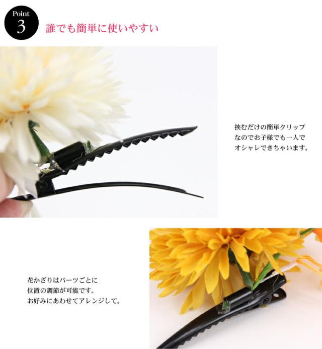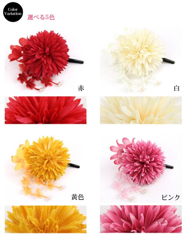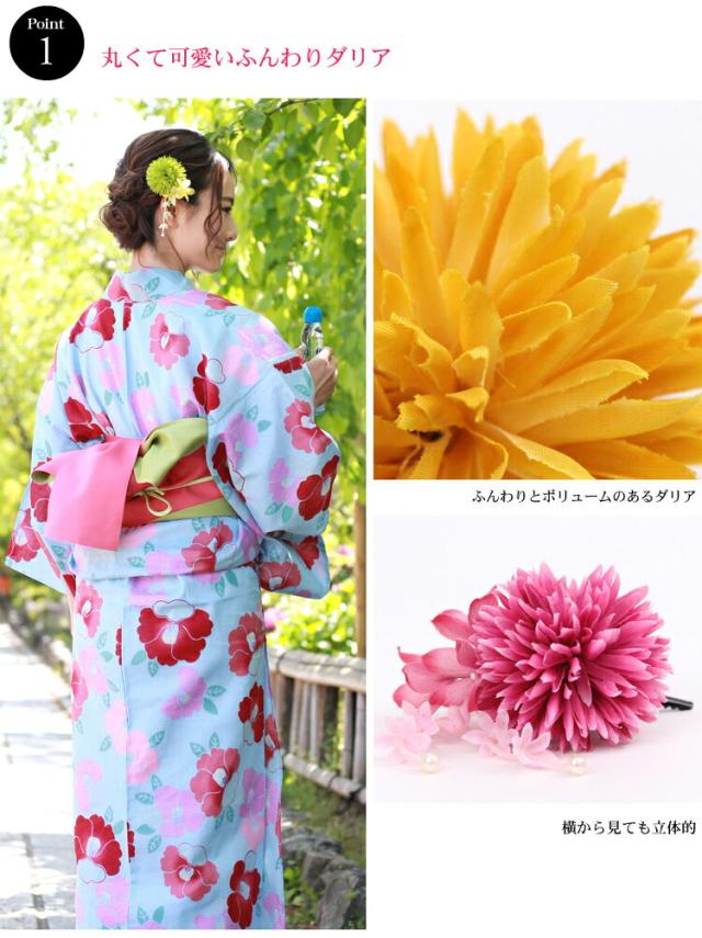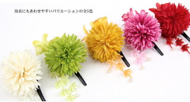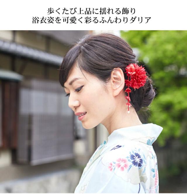 浴衣 髪飾り クリップ 揺れ飾り付きふんわりダリア 5色 浴衣 夏祭り 花火大会 花 赤 白 黄色 ピンク 黄緑