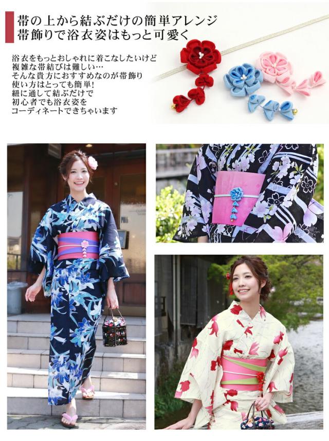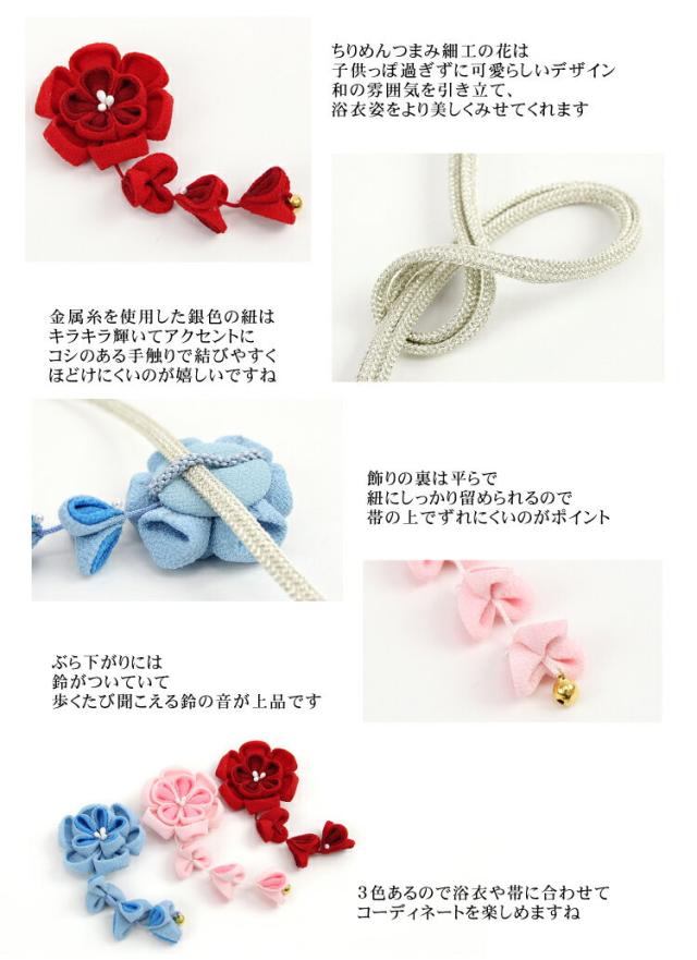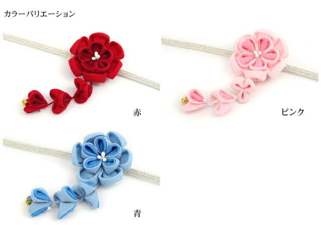 日本製 伊賀組み紐 帯飾り ぶら下がり付きちりめんつまみ細工の花飾り 3色 赤 青 ピンク 夏 浴衣 帯締め