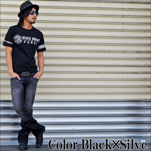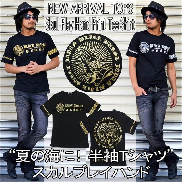 半袖Tシャツ ブランドロゴプリント&スカルプレイハンド 合掌プリントストレッチ 半袖Tシャツ 【閉店セール】オラオラ70532 メンズファッション キレイメ シンプル メンズカジュアル 悪羅悪羅 メンズ アメカジ クールカジュアル メール便300円対応商品 BURST JAPAN
