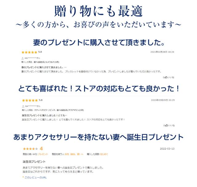 - 姪っ子にステキな贈り物が出来、姪もとても喜んでもらえて嬉しかったです。 20歳に記念に残る可愛くてステキなブレスレットを贈れた事を嬉しく思います。ありがとぅございました。