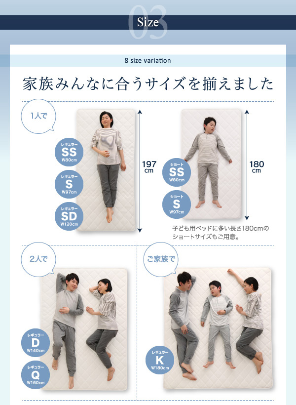 ショート シングル:長さ180×幅97×高さ7cm/11kg