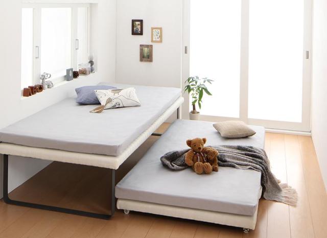組立簡単!すのこ構造 省スペース スライド収納親子ベッド 【Bene&Chic】ベーネ&チック 親子ベッドセット 【薄型軽量ポケットコイルマットレス付き】 シングル