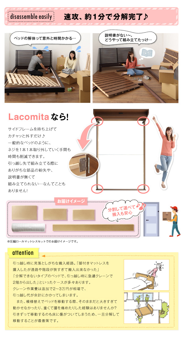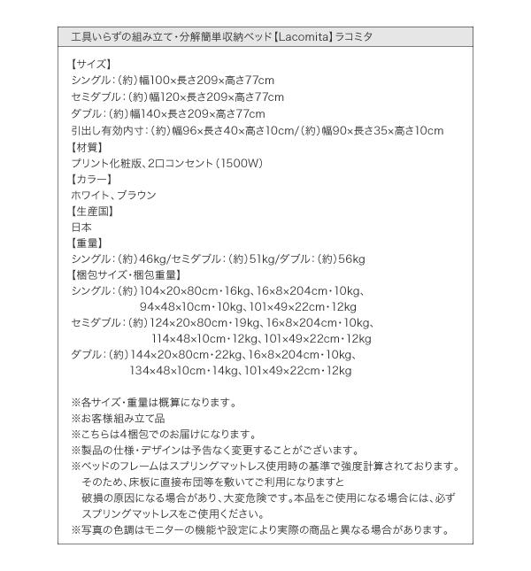 工具いらずの組み立て・分解簡単収納ベッド 〔Lacomita〕ラコミタ 〔ボンネルコイルマットレス付き〕 シングル 〔フレーム色〕ホワイト 【北海道・沖縄・離島配送不可】