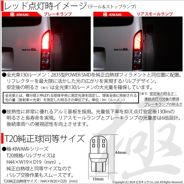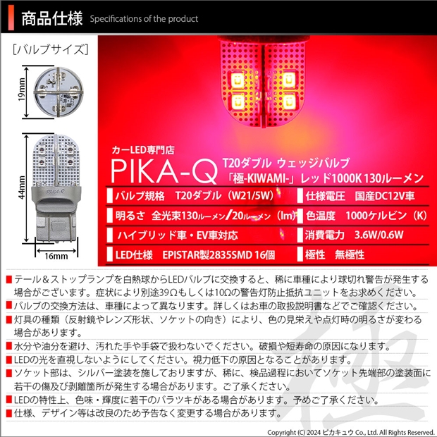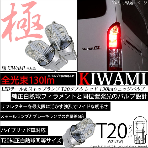 ピカキュウ,LED専門店,LEDバルブ,国産DC12V車,LED,SMD,T20ダブル,W21/5W,スモール&ストッププ,レッド,全光束130lm,ハイブリッド車対応,極,KIWAMI,きわみ