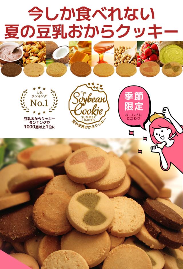 今だけ増量1kg→1.2kg 夏の豆乳おからクッキー 送料無料 ダイエット ヘルシー クッキー 豆乳 おから クッキー 季節限定 スイーツ 大豆