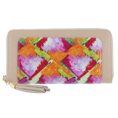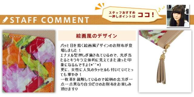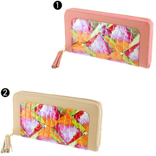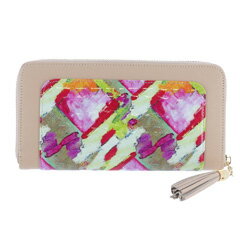 絵画風のアートチックな柄部分にはエナメル加工と型押しを施し、立体感を演出したラウンドファスナー式の長財布をご紹介。