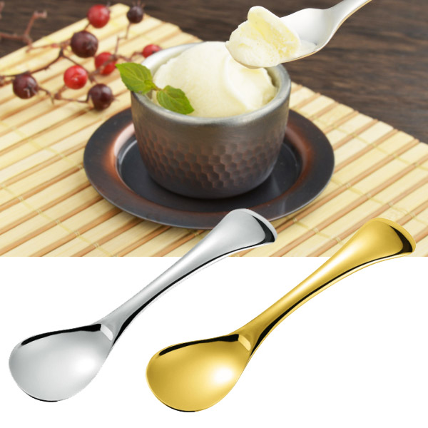 銅の熱伝導の良さを生かした純銅製。アイスクリームをいつでも「食べごろ」でいただくためのスプーン。なめらかカーブで口離れが良い。