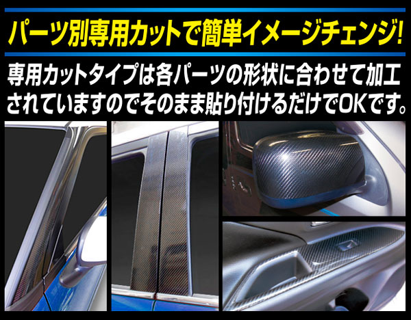 車種専用カットタイプなので、各パーツの形状に合わせて加工されており、そのまま貼り付けるだけでOKです。