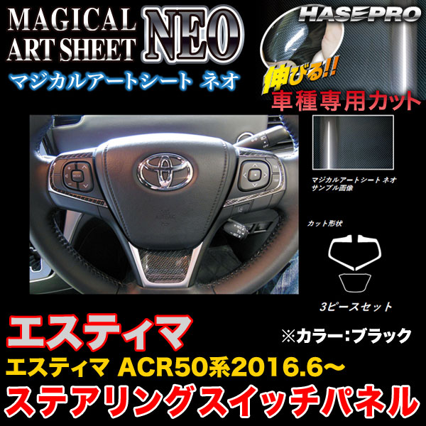 ハセプロ MSN-SWT6 エスティマ ACR50系 H28.6〜 マジカルアートシートNEO ステアリングスイッチパネル ブラック カーボン調シート