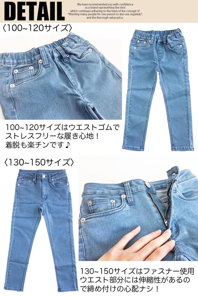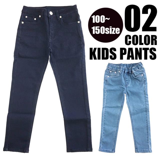 値下げ キッズ 100cm 110cm 120cm 130cm 140m 150cm 子供服 パンツ 女の子 男の子 デニム ボトムス ジーパン ジーンズ Gパン 無地 ロングパンツ【メ】