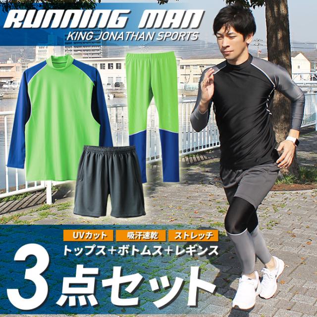 メンズ セットアップ ランニングウェア スポーツウェア パンツ Tシャツ トップス コンプレッション 3点セット 長袖 送料無料