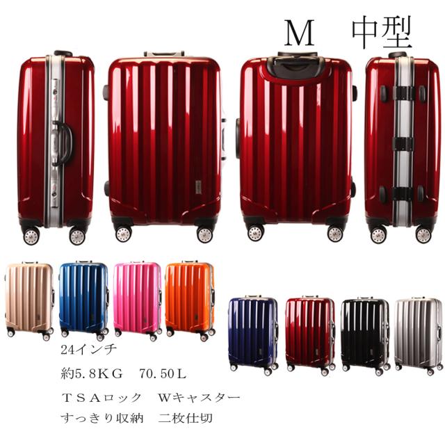 【送料無料】【半額セール】フレーム開閉式スーツケース M 中型 KT523ACX-M TSAロック 四輪Wキャスター 2枚の仕切り キャリーバック 海外旅行 修学旅行 出張