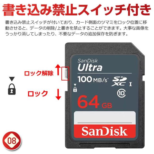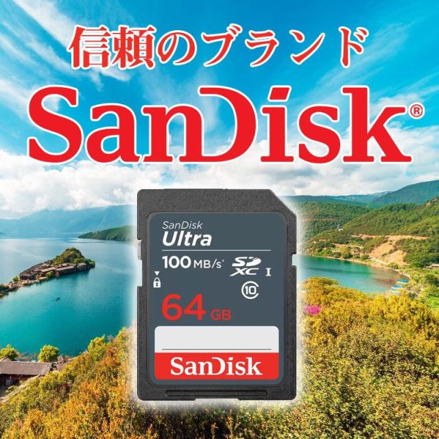 SDXCカード Ultra 64GB UHS-I U1 R:100MB/s Class10 SanDisk サンディスク SDカードSDSDUNR-064G-GN3IN海外向けパッケージ ポイント消化