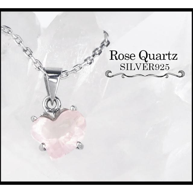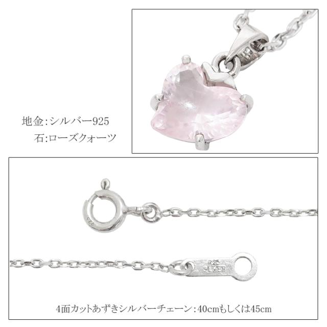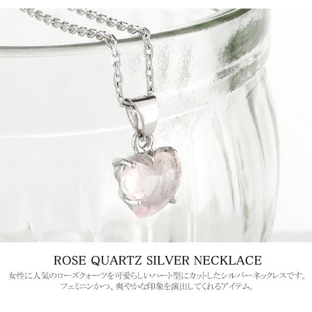 女性に人気のローズクォーツを可愛らしいハート型にカットしたシルバーネックレスです。