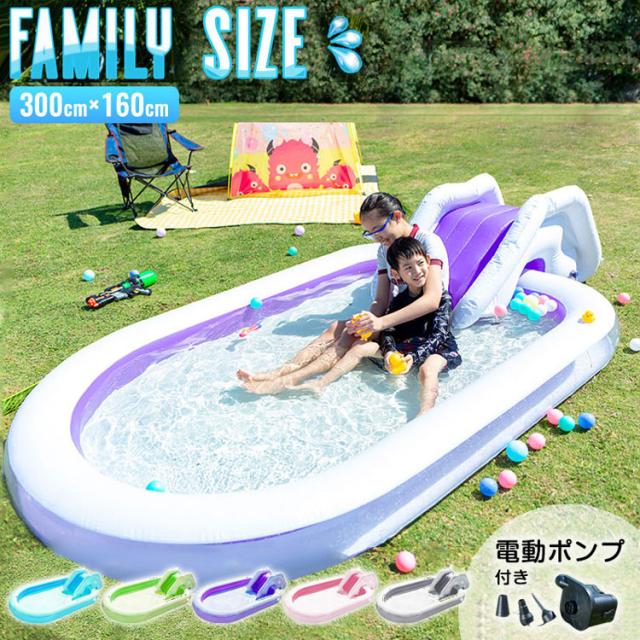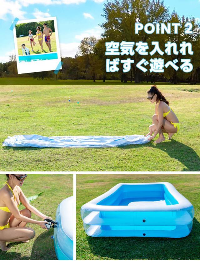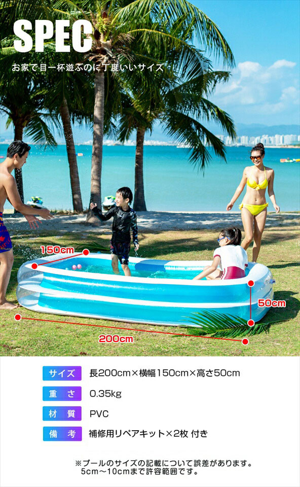 ノーマルサイズ/200×150cm | ビッグサイズ/262×175cm | ファミリーサイズ/305×173cm | 滑り台付きプール/300×160cm |