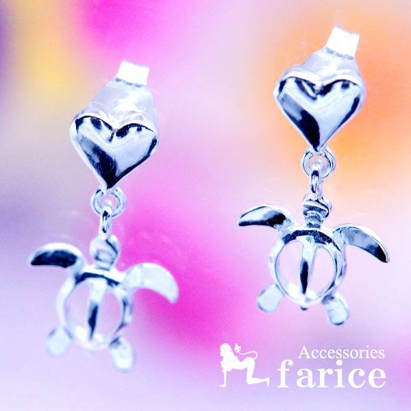 ハワイアンジュエリー スタッド ピアス ハート カメ ホヌ ウミガメ レディース シルバー925