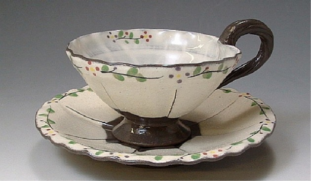 京焼の伝統と洋風の意匠が見事に調和した新感覚の器です。縁のフリルと小花が愛らしさのポイント。