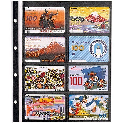 台紙:黒台紙。ポケット:2列4段。クオカードなど。10枚入。
