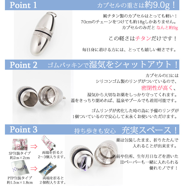 【leger レジエ】チタン製 グリップ加工 カプセル型 卵型 ピルケース ペンダントトップ(ピルケースのみ) 薬入れ 薬ケース くすりケース 防水 アレルギーフリー