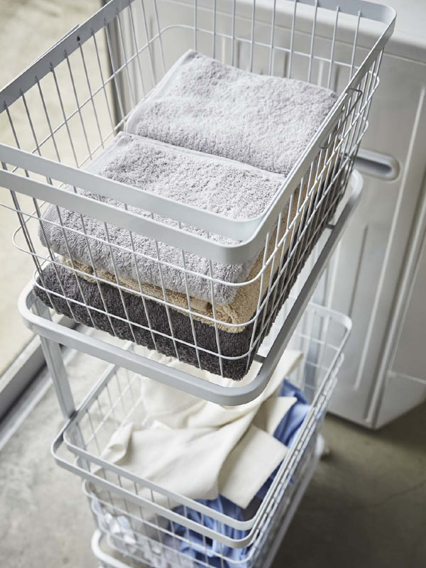 シンプルでスタイリッシュなランドリーワゴンです。清潔感のあるスチールがまるでインテリアのようです。生活感が出てしまいがちな洗面所やバスルームが上質な空間になります。