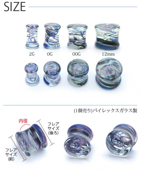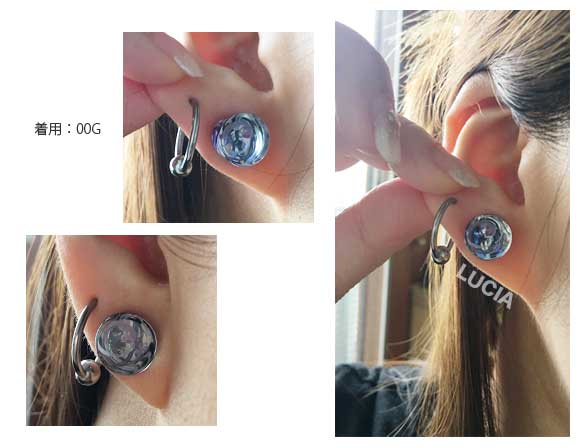00ゲージ 1/2インチ ハーフインチ ピアス 強化ガラス 金属アレルギー対応 つけっぱなし 拡張 メンズ レディース