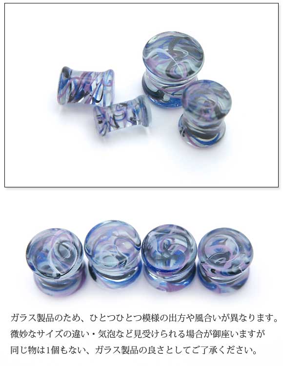 本日P2倍 00G 12mm ピアス ボディピアス マーブル ガラス プラグ インチ パイレックスガラス プラグ ダブルフレア アイレット 拡張