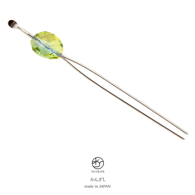 玉簪 かんざし 黄緑色 グリーン 青 銀色 クリア 多面カット クリスタル調 シンプル 二本足 髪飾り 和洋兼用 浴衣向け 小紋向け カジュアル ヘアアクセサリー 和装