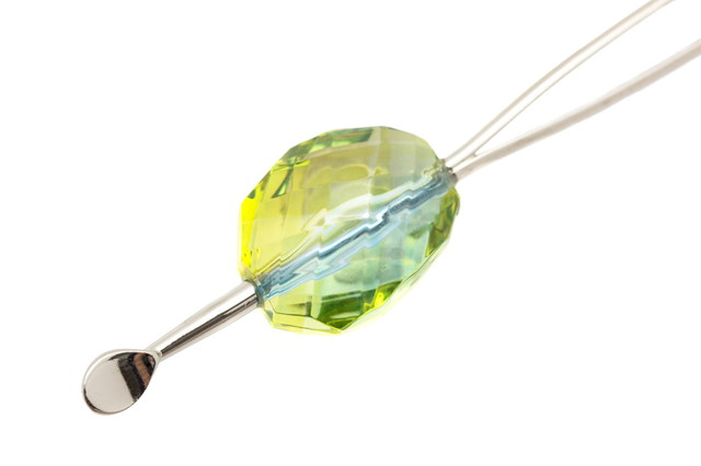 光を当てる角度によって色の表情が変わる、キャンディのような透明感のある玉簪(かんざし)です。