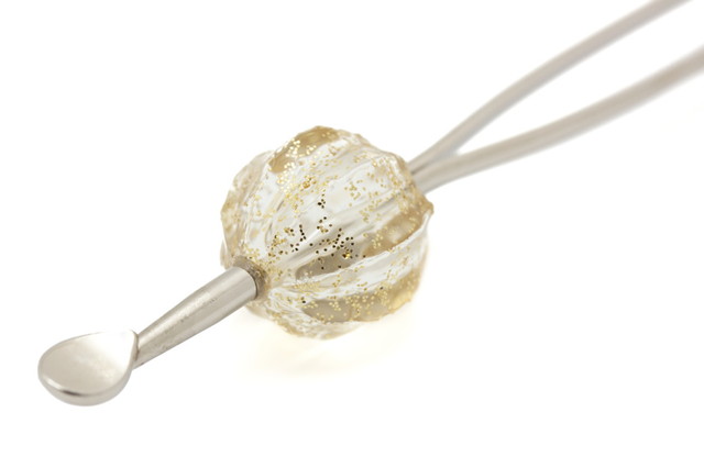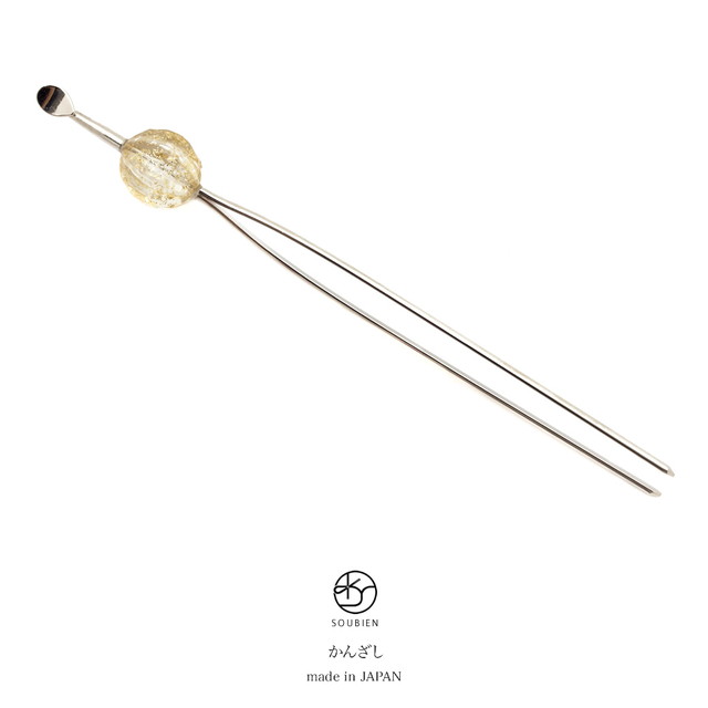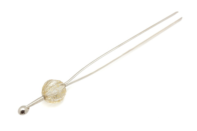 球体に筋がはいったデザインで、クリアな中に金のラメが入った清涼感のある玉簪(かんざし)です。