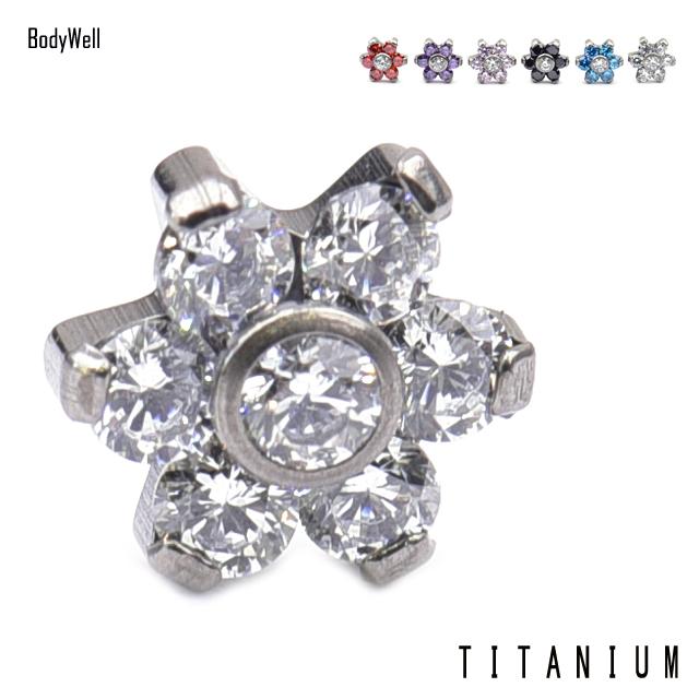 ボディピアス 14G用 アレルギーフリー ※パーツのみ※ ストーン フラワー インターナルタイプ 軟骨ピアス ロブピアス