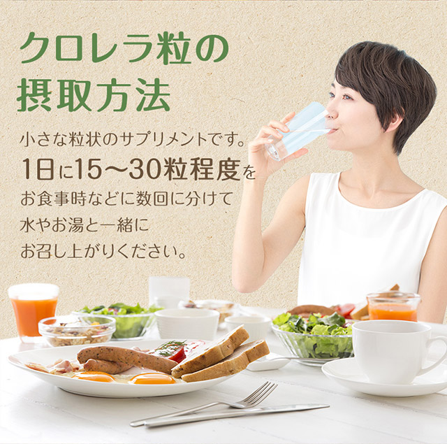 ・添加物などは一切加えずクロレラだけをそのまま粒状(1粒200mg)にしたものです。