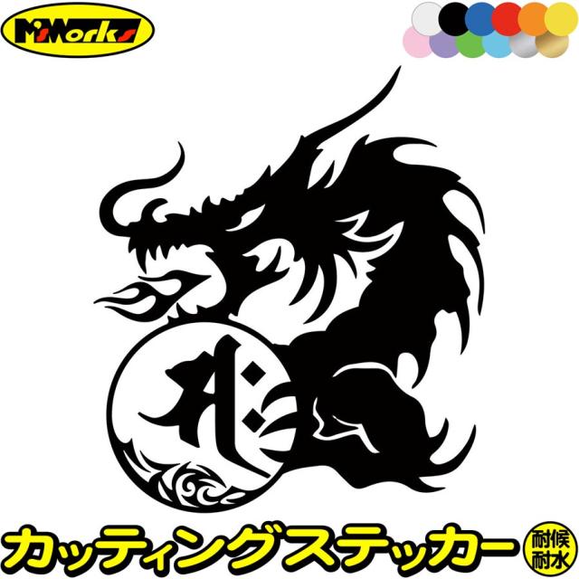 ドラゴン 梵字 ステッカー 干支梵字 サク 勢至菩薩 午 うま ドラゴン dragon 龍 左 9L カッティングステッカー 全12色 バイク ヘルメット かっこいい 車 タンク バンパー ステッカー 防水 耐水 アウトドア デカール 転写シール 140mmX160mm