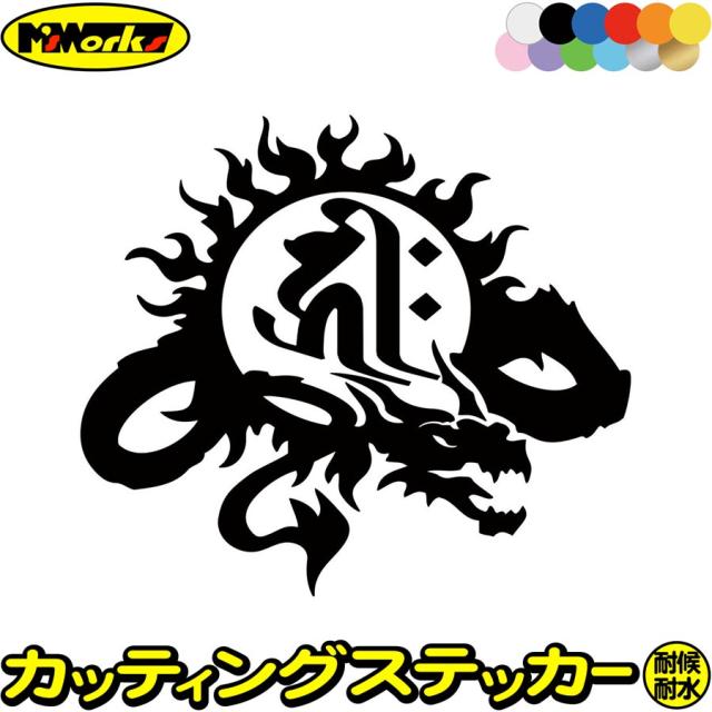 車ステッカー カーステッカー カー用品 干支梵字 キリーク 阿弥陀如来 戌 亥 いぬ いのしし ドラゴン dragon 右 9R サイズL カッティングステッカー 全12色 車 かっこいい おしゃれ タンク ステッカー 防水 耐水 アウトドア デカール 転写シール 184mmX210mm