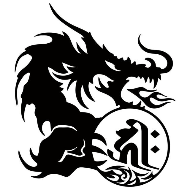 ドラゴン 梵字 ステッカー 車 かっこいい おしゃれ タンク ステッカー 防水 耐水 アウトドア デカール 転写シール