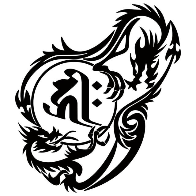 干支梵字 キリーク 阿弥陀如来 戌 亥 いぬ いのしし ドラゴン dragon 右 9R サイズL カッティングステッカー BOE8-009RB