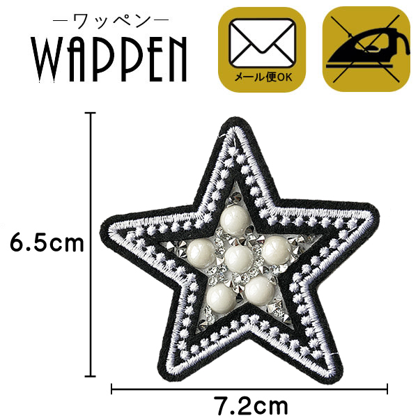 ワッペン 刺繍 ストーンワッペン 縦6.5cm×横7.2cm スター 星 キラキラワッペン アップリケ 手芸 ワッペンデコ母の日 プレゼント ギフト