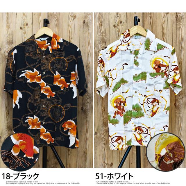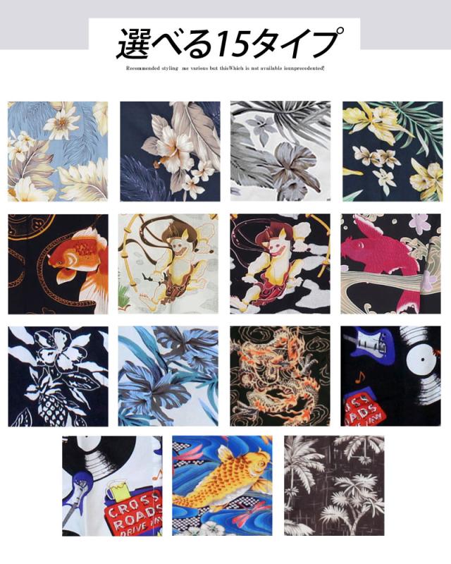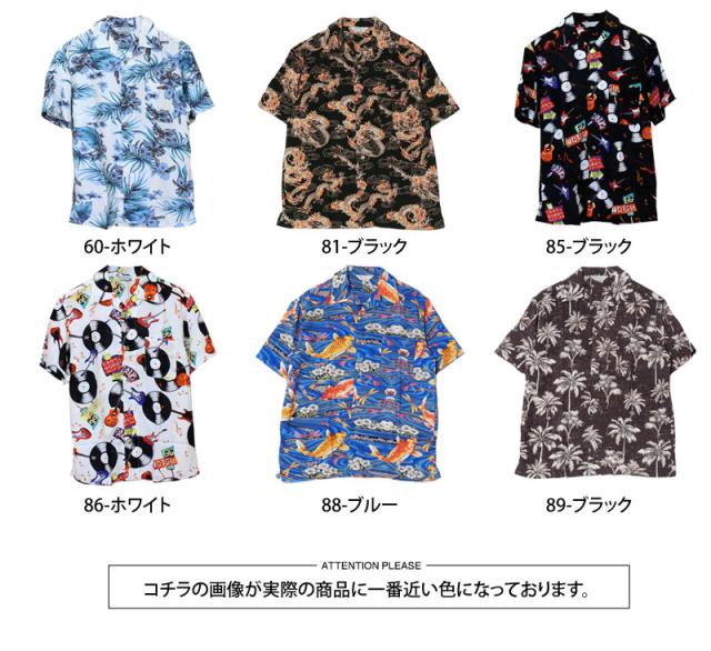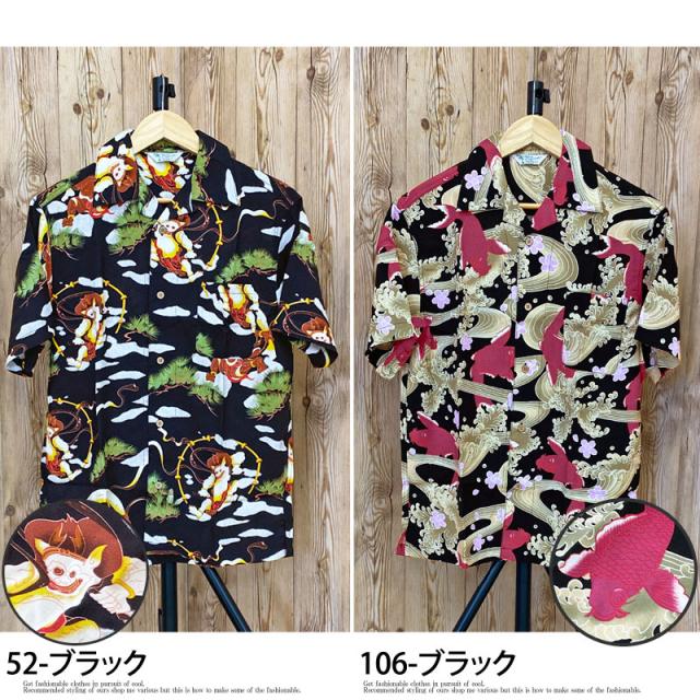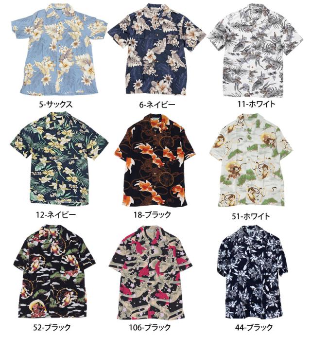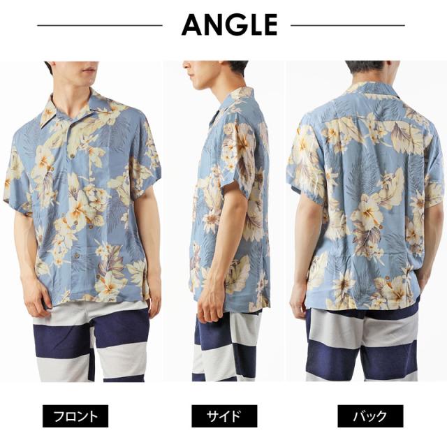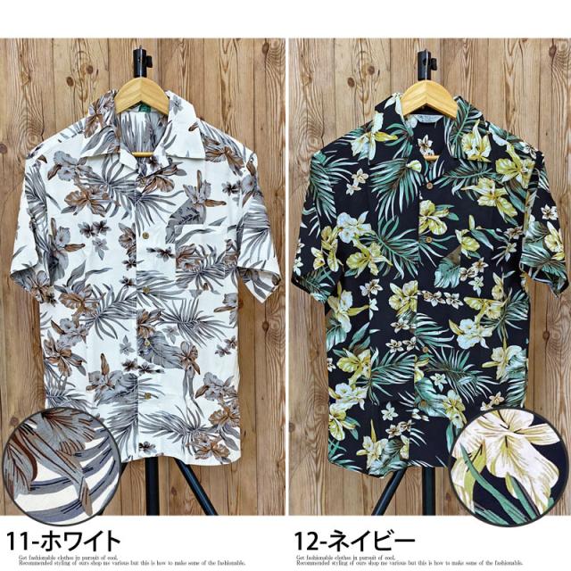 夏新作 アロハシャツ メンズ シャツ 半袖 レーヨン素材 ボタニカル リーフ 花柄 和柄 ロゴ 開襟シャツ オープンカラー 送料無料 父の日 ゆうパケ