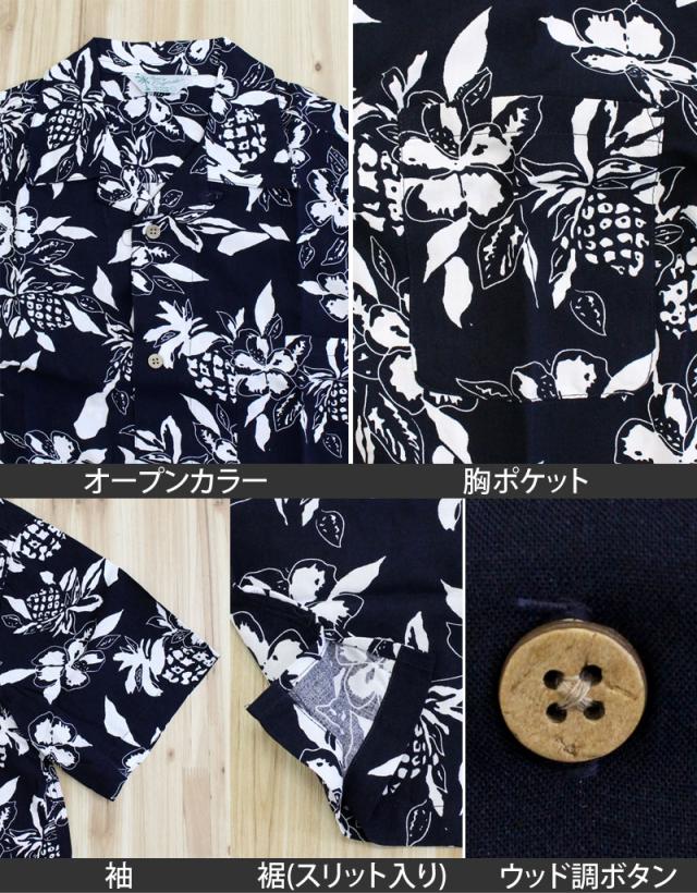 裾はスリット入りで開放的な着心地で夏のアメカジサーフスタイルが楽しめるアロハシャツです。