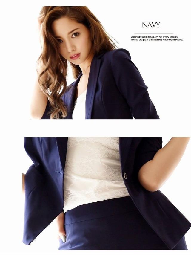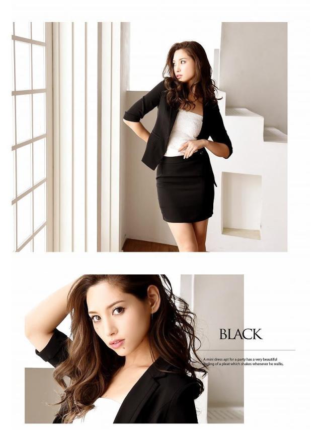 ☆大人シンプルなデザインのキャバスーツは美脚効果抜群なタイトミニスーツ♪