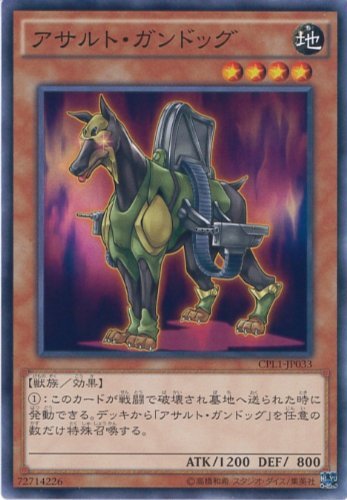 カード名:アサルト・ガンドッグ 収録:コレクターズパック−運命の決闘者編−(CPL1) 品番:CPL1-JP033 レアリティ:ノーマル